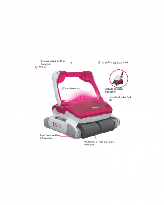 Pentru a face din curățare piscinei o adevărată plăcere, acest robot îți va lumina piscina cu o strălucire roz magnifică, care se adaptează și se coordonează cu acțiunea de aspirare al robotului!
