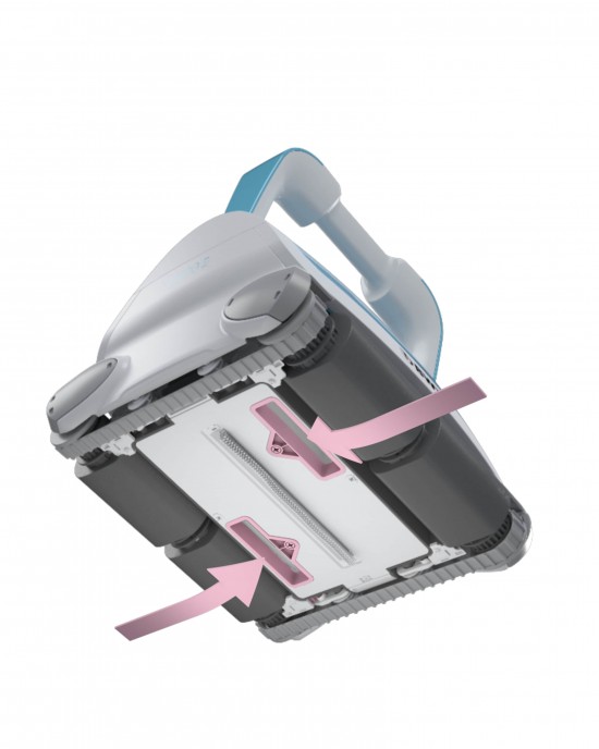 Robotul P600 are 4 perii din PVA special create pentru a fi compatibile cu toate finisajele suprafeței piscinei. Alături de peria suplimentară din PVC vibrantă, acestea asigură o curățare impecabilă a piscinei dvs.